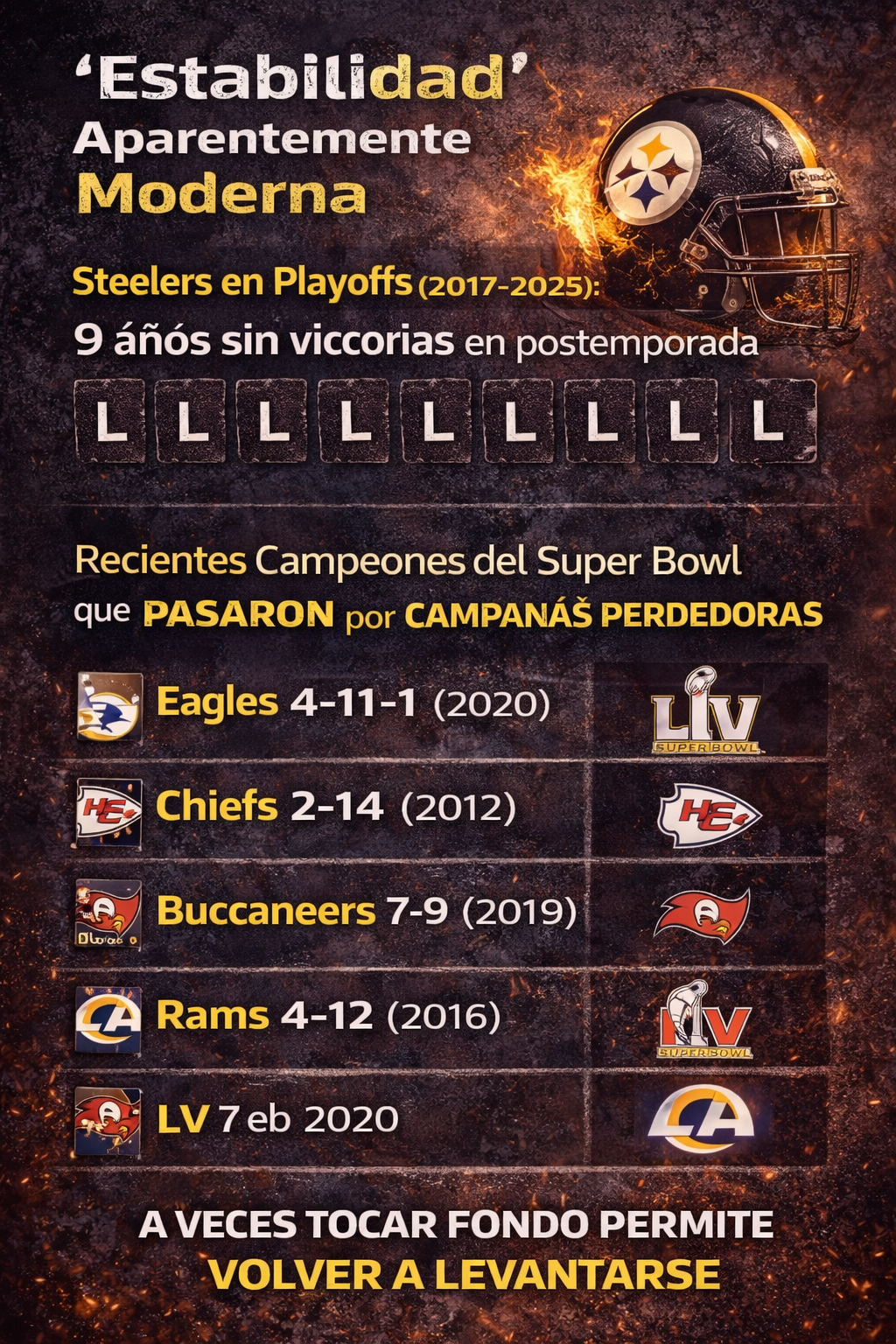 En la NFL moderna, no caer nunca puede ser más peligroso que caer a tiempo. Los campeones recientes lo entendieron. Los Steelers están apenas por descubrirlo. Porque, a veces, para volver a ganar de verdad, hay que aceptar perder primero.