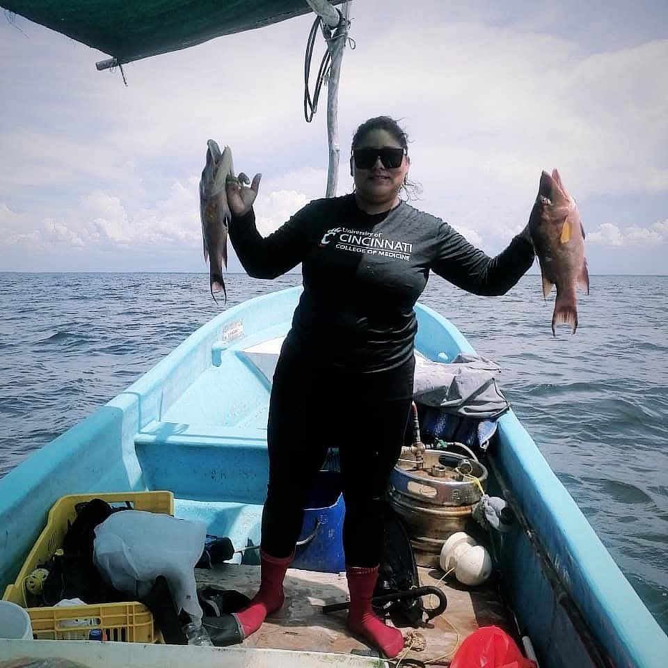Más adelante comenzó a bucear en zonas cercanas a la costa, cada vez un poco más profundo, guiada por las enseñanzas de su padre sobre las especies marinas y las técnicas para identificarlas y extraerlas.